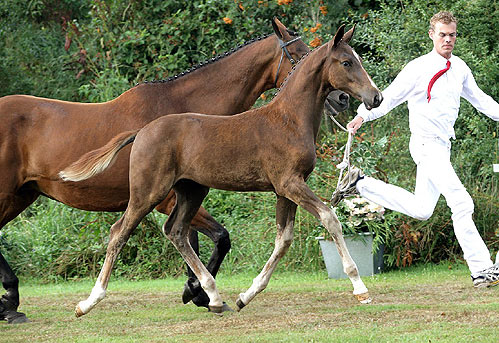 Sire Santano is a son of the world-champion Sandro Hit. Dam Ennemiek is just like the international dressagehorses Luxaflex, Ceylon and Disconto, a daughter of the keur-awarded stallion Wellington. In her IBOP Ennemiek scored very well and she received a 9 for her trott. Grandam Amiek was very successfull on the UTV-keuring and brought also the ZZ-licht dressagehorse Kaspar (Clavecimbel). Great-grandam Monique is mother of the KWPN-stallion Radboud and brought several Z-sporthorses. This lineage carries several UTV-mares, the NRPS-stallion Gameboy (Gribaldi) and many (inter)national showjumpers like Eurocommerce Sydney, Oliviera, Ironique, Hamilton TS and Bermuda |