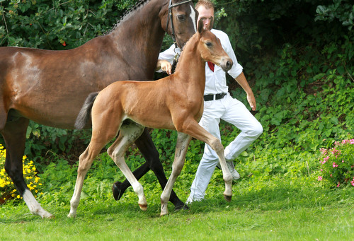 The Small Tour-dressagestallion Uphill puts his stamp on his offspring like the successful Briljant, Aston Martin and Curonia. Dam Rachel produced several well-performing sporthorses. Damsire Hemmingway is sire of Grand Prix-dressagehorses. Fourth level-dressagehorses like Lafayette K and Wander are out of this direct damline as well. |