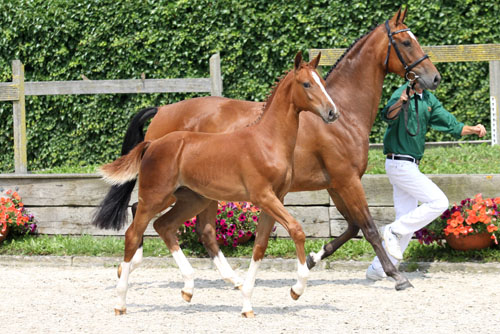 The international sport stallions Emerald van 't Ruytershof (Harrie Smolders) and Lupicor are here brought together with a successful mare line. Dam Chinula N gave evidence of her natural ability in the IBOP for which she received five times an 8 out of 10 and total score of 78.5 points. She is a sibling to the international 1.50m-jumper Unlimited (s.Voltaire) showed by Loisse Garcia Padron. Granddam Hinula is a full sister to the German stallions Lancer I-III and produced several 1.35m-jumpers as well as the national jumper Thianula-N (s.Quidam de Revel). Thianula-N in turn, is the mother of eight-year-old stallion Chin Quidam VDL (s.Chin Chin). This top talent won the Youngster Cup Final in the Achener Soers this year with the in the USA located Irish rider Darragh Kenny. |