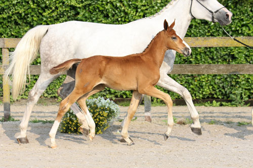 In this pedigree are stacked four great stallions. Sire is the genetically interesting Mylord Carthago who we know from the international arenas with his rider Pénélope Leprévost. Mylord Carthago is at the top of the jumping ranks and participated at the London Olympic Games in 2012. His progeny are promising as well. Via the great Grand Prix-stallion Mr. Blue, the sire of many international jumpers such as Simon, Plot Blue and Sapphire, this line goes back to granddam Nickara S. She herself jumped at 1.30m level and her 6yo descendant Cornet Tinus TS (s.Cornet Obolensky) is trained and owned by Stal Schuttert. Great granddam Dara showed at 1.35m-level and is an half sister to international 1.40m-jumping horse Vienna (s.Cavalier) ridden by Joy Lammers. With the proven studs Argentinus and Ramiro Z added to the pedigree you get a pedigree with high performance genes. |
