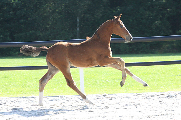 This promising Lord Pleasure has great origines. Besides an impressive showjumping career sire For Pleasure stands out as a breeding stallion, due to top progeny like Flora de Mariposa, Hello Forever, Barron and Fit For Fun. Dam Top Folia scored well in the mare testing in Holstein and represents the solid Holsteiner damline 173. This damline leads back to the well-known Maximum-mare Folia, who is dam of several stallions including top progenitors Capitol I-II. Another highlight in this damline is granddam BB Countess. She competed at international 1.50m level with Theo Muff herself and is now successfully ridden by Sascha Braun in 1.45m classes. This Contender-mare is a full sister of the international 1.45m showjumper Chorus II of Tamara Schwab. |