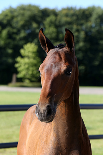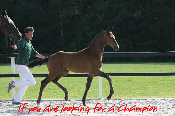 This stunning colt was crowned champion of the foal inspections in Tolbert. His origines are very promising too. His dam Tivemmie already produced three third level dressage horses and is a half sister of the fourth level dressage horses Zivemmo (s.Polansky) and Bivemmo (s.Discovery). This well-known damline leads back to Ivemmie, she is a half sister of the Olympic dressage horse Arnoldo Thor (s.Purioso) of Dominique d'Esmee and the fourth level horse Demmie (s.Afrikaner xx). Besides that, Ivemmie is granddam of the international Small Tour dressage horse Avemmo (s.Ferro). Sire Apache is doing well on international Grand Prix level with Emmelie Scholtens and produced promising progeny like the KWPN approved sons Grand Galaxy Win, Hometown en Improver VDT. |