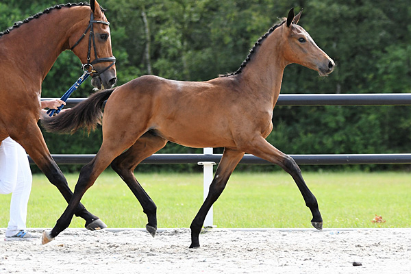 Sire Geniaal is starting to live up to his name under the saddle of Hans Peter Minderhoud. He also seems to be a remarkable breeding stallion and he already produced the national foal champion. In this pedigree Geniaal is combined with the interesting mare Rovinia, who is a half sister of the international Grand Prix dressage horses BMC Ojay (s.Jazz) of Marlies van Baalen and Private Dancer (s.Jazz), who has performed with Willem-Jan Schotte and others. A full brother of Rovinia is the Small Tour horse Socrates of Veerle Mullenders. She has already produced several third dressage horses herself and is sired by the Small Tour stallion Kennedy, of which several top-level horses such as Poko Loko, Sundayboy and Udo are derived from as well. |