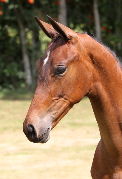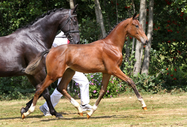 Sire Bojengel has three good gaits and shows a lot of talent and willingness to work. In the performancetest and Pavo Cup he did well and his first foals also seems to have a lot of talent and good movements. Dam Vivaldi did a good IBOP and is a half-sister of the Jazz-mare Cleopatra, who was champion of the Central Keuring of Groningen as a 3yo. Damsire Ferro was really succesful on Grand Prix-level and took part of the OS. He is one of the most important and influantial stallions for the Dutch dressagebreeding. Granddam Regalia also did a good IBOP and is sired by the Grand Prix-stallion Samber. |