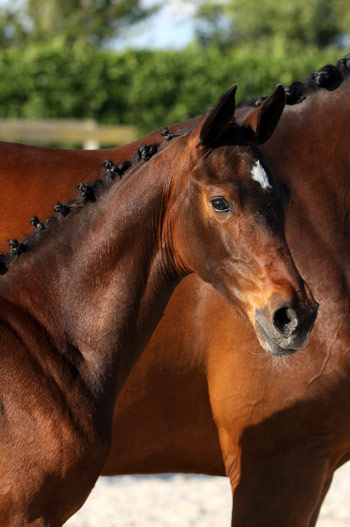Kroonprinses is sired by the promising Grand Slam VDL. In the performancetest there weren?t any doubts about his unlimited possibilities as a showjumper. He has excellent reflexes, a powerful canter and enough scope to jump over the biggest fences. In this pedigree he is combined with the mare Gravin, who is just like top horses such as Oranta, Milano, Springtime and Wodka Lime sired by the international sport- and breeding stallion Indorado. Granddam Jonkvrouw is dam of the 1.40m showjumper Jonker 12 (s.Jodokus) and several 1.30m hrorses. Besides that she is granddam of the 1.45m jumper Vienna (s.Lux) and the NRPS approved stallion Ibiza (s.Azteca VDL). Also the international showjumpers Sarlino (s.Carlino) and Lucca (s.Ahorn) are out of this family. |