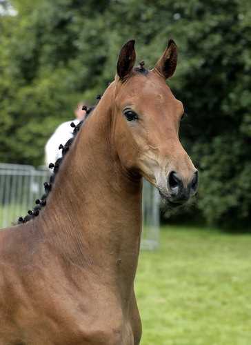 Deze fantastisch gelijnde en sterk bewegende Chico werd verkozen tot beste dressuurveulen van de provincie Groningen. Daarmee werd Chico ook uitgenodigd voor de nationale veulenkeuring. Zijn vader Uphill (Oscar) won afgelopen jaar de hengstencompetitie en nam voor de tweede maal met succes deel aan het wereldkampioenschap in Verden. Uit moeder Salita Roos (Flemmingh) is dit jaar een dochter van Goodtimes uitgenodigd voor de nationale merriekeuring. Grootmoeder Kerstroos (Damiro) is een halfzus van het Grand Prix-dressuurpaard Chantor du Bomence (Roemer) en een volle zus van het internationale springpaard Lelie. |