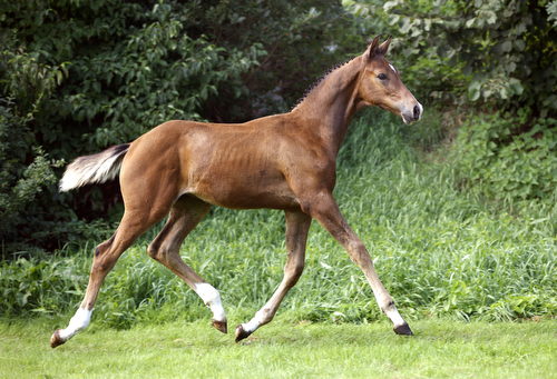 De Quite Easy-zoon Veron tekende voor het vaderschap van deze Dagho. Op de keuringen gooien de veulens van Veron hoge ogen. Moeder Nilona is geklasseerd in het M springen, grootmoeder Ilona sprong zelf in het Z. Zij leverde al een ZZ-springpaard van Indoctro en is zelf een volle zus van de in Zwitserland gekeurde hengst Gentleman V. Ook is Ilona een volle zus van de moeder van het bekende internationale springpaard Kanselier (v.Notaris) van Ellen Whitaker. Uit deze Holsteiner stam komen goedgekeurde hengsten als Pacific, Radisson, Dutchboy en Intermezzo. |