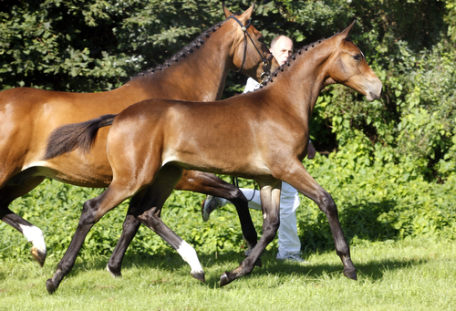 De Caritas-dochter Meginia werd in de Z2-dressuur uitgebracht en is hier gekoppeld aan de jonge talentvolle hengst Wonderboy. Als veulen werd Wonderboy bij Star Sale geveild en later is hij met overtuigende cijfers ingeschreven in het stamboek. Via grootmoeder Eginia, een halfzus van de KWPN hengst Dutchboy, gaat de moederlijn terug op de bekende Amor-dochter Virginia. Zij is onder meer grootmoeder van Bundeschampionat-winnaar Cocktail Time en de tweevoudig Pavo Cup-winnaar Patser, die nu in de Lichte Tour succesvol is. Uit deze stam komen ook de dressuurhengsten Blue Horse Zo Special en Just Royal Dancer. |