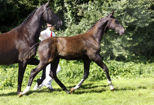 De imponerende Dulf van den Bisschop werd als driejarige overtuigend kampioen van de BWP-hengstenkeuring. Hij combineert het prestatiebloed van Heartbreaker en Libero H. Deze Diamant W voegt daar van moederszijde het bloed van de internationale sport- en fokkerijhengst Burggraaf aan toe. Moeder Wereniki-W kreeg in haar merrietest een 8 voor de galop en reflexen. Als grootmoeder staat Mystery W te boek. Onder Billy Twomey won haar zoon Senator W (v.Calvados) in 2006 de zevenjarigenrubriek in Rotterdam. Verder voert Diamant W in de moederlijn het bloed van Zirkoon, Nocturn en Erdball xx. |