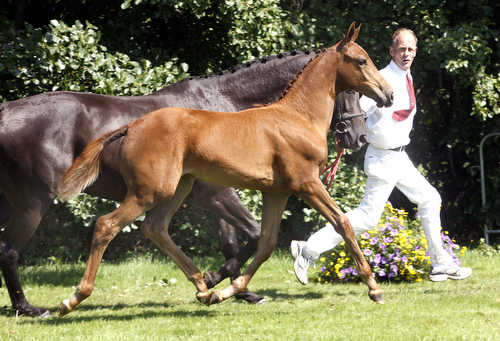 Deze extra bewegende Devega werd uitgeroepen tot kampioen op de centrale keuring in Tolbert. Hij toont veel gelijkenis met zijn befaamde vader Jazz, Grand Prix-dressuur en toppaardenleverancier bij uitstek. Moeder Vega stamt af van Metáll, één van de best fokkende Ferro-zonen. Als grootmoeder staat de predikaatrijke Glamourgirl te boek, die afstamt van de Grand Prix-dressuurhengst Samber en zelf succesvol in de klasse Z2-dressuur presteerde. Van Kennedy bracht zij reeds een Z2-dressuurpaard. Grootmoeder Trea bracht in combinatie met Samber meerdere Z2-dressuurpaarden evenals een Z-springpaard. |