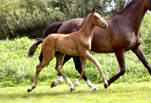 De veulens van Daddy Cool zijn geliefd in binnen- en buitenland. Hij was in 2006 Oldenburger Landskampioen en is hier gekoppeld aan de merrie Restless Raimond, die zelf presteerde in de Z2 dressuur. Grootmoeder Jerlia stamt af van de goed verervende hengst Uniform en is een halfzus van de imponerende NMK-kampioen van 2003, de Krack C-dochter Terlia. Ook de AES-gekeurde hengst Rivaal (v.Peter Pan), komt uit de Architect-dochter Ferlia. Verder voert deze moederlijn het bloed van Jurist, Commandant en Norton. |