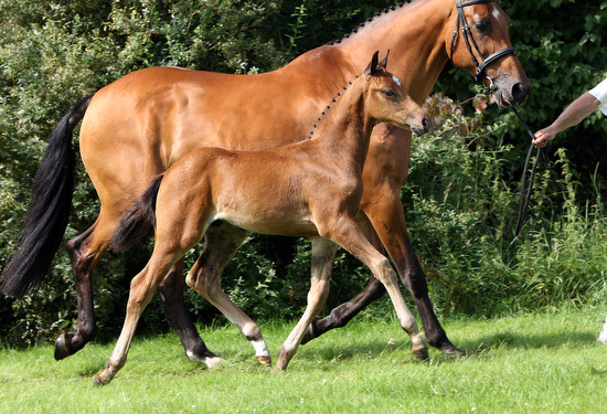 Vader Clinton is één van de grote namen uit de Belgische sportgeschiedenis en behaalde onder meer een vijfde plaats op de Olympische Spelen in 2004. Zijn zoon Cornet Obolensky nam deel aan de Olympische Spelen. Moeder S.Korena liep in de finale van de NMK en was geplaatst voor de VSN-finale. Van moedersvader Ahorn kennen we internationale springpaarden zoals Eurocommere Genève, High Valley Z en Chanel. Grootmoeder Korena is een dochter van de topvererver Caletto I. Verder voert de moederlijn het bloed van Carneval, Flamberg en Nautilus xx. Uit deze rechtstreekse lijn komen ook de hengsten El Bundy (v.Escudo I) en Lucky Luke (v.Lacapo). |