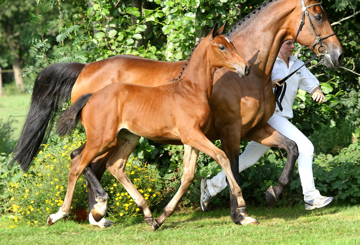 De uiterst getalenteerde hengst Carambole springt zichzelf keer op keer in de kijker en liet vorig jaar een goede eerste jaargang veulens zien. Als moeder staat de goed fokkende merrie Jarinosa te boek, die onder meer de internationaal springende After Dark (v.Darco) en Octrooi (v.Voltaire) leverde. Laatstgenoemde was bij het KWPN aangewezen. Ook leverde Jarinosa de nationale springpaarden Carinosa Z (v.Carthago Z) en Ninosa II (v.Guidam). Moedersvader Nimmerdor heeft zich in zowel de internationale sport als fokkerij ruimschoots bewezen. Grootmoeder Arinosa sprong zelf in het ZZ en ook haar volle broer bereikte dat niveau. Deze sportlijn voert verder het bloed van Jason, Irco Polo en Normann. NL-merrielijn 095 / Fokfamilie 709 |