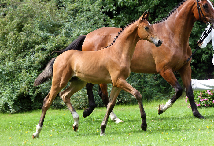 Met achtereenvolgens Uphill, Johnson, Florestan I en Donnerhall beschikt deze Florentinus O.A. over een interessante en consequent gefokte dressuurafstamming. Uphill presteert zelf in de Lichte Tour en zijn oudste nakomelingen vallen op in de sport en de jonge paardenrubrieken. Moedersvader Johnson lijkt zich ook te gaan onderscheiden in de fokkerij en is zelf volop in training voor de Zware Tour. De bewezen topverervers Florestan I en Donnerhall voegen extra bewegingskwaliteit toe aan deze pedigree. Moeder Bellefleur O.A. is een halfzus van de in Zweden gekeurde hengst Wladimir O.A. (v.Flemmingh), die succesvol deelnam aan het WK in Verden. Florentinus O.A. is geselecteerd voor de Nationale Veulenkeuring. Hannover stam 236 |