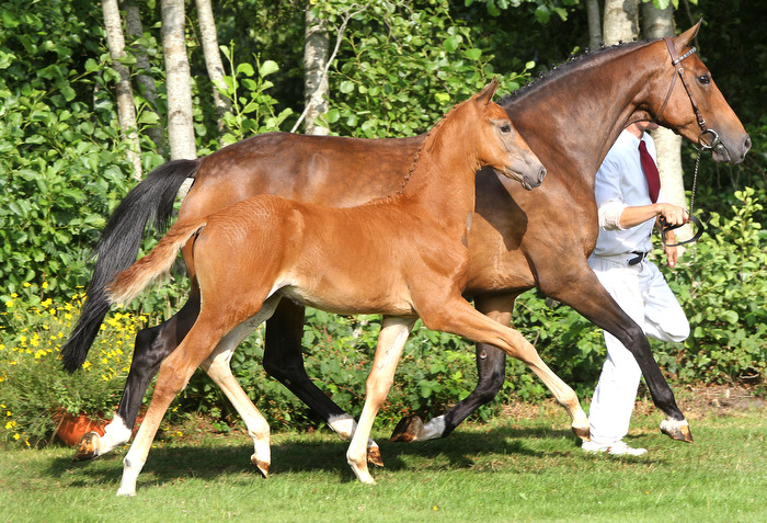 Als vader staat de zeer succesvolle Lichte Tour-dressuurhengst Uphill te boek, die al een heel stel opvallende nakomelingen heeft gegeven waaronder Ashton Martin, Carlton Hill en Briljant. Deze Fantastic O.V. is gefokt uit de merrie Viola, die goed scoorde voor de dressuuronderdelen in de IBOP. Een volle zus (Tola) en volle broer (Up to Date) behoorden tot de top van de jonge paarden in Amerika. Moedersvader is bewegingsvererver Flemmingh die bekendheid geniet dankzij de Grand Prix-dressuurpaarden Lingh, Krack C en Melvin. In de derde generatie treffen we het bloed van Argus, de hengst die zowel in de internationale dressuur- als springsport furore wist te maken. NL-merrielijn 030 / Fokfamilie 278 |