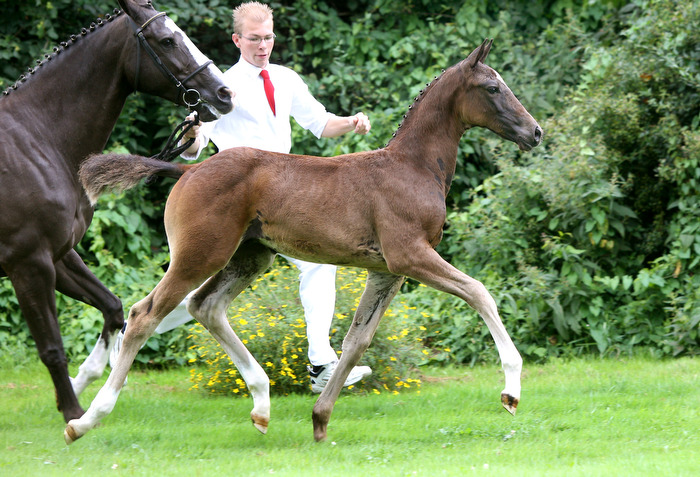 Vader Zapatero VDL lijkt als sportpaard alles in huis te hebben voor het hogere werk. Als fokhengst deed hij vorig jaar al goede zaken met meerdere producten in de finale van de Nationale Veulenkeuring. Moeder Silvarella heeft een goede IBOP op haar naam en stamt af van de internationale springhengst Kenwood. Grootmoeder Dorella is een halfzus van het Grand Prix-springpaard Corella (v.Saros xx) van Mark Armstrong. Via de sportpaardenleverancier Wellington komen we bij de bekende UTV-merrie Portella, die zelf dubbel Z geklasseerd was. Portella leverde diverse sport- en keuringstoppers en is grootmoeder van het internationale springpaard Reinatella (v.Lancelot). Een halfzus (v.Vaillant) van Frederik B won het Fries kampioenschap vrij springen dit jaar. Fokfamilie 1773 |