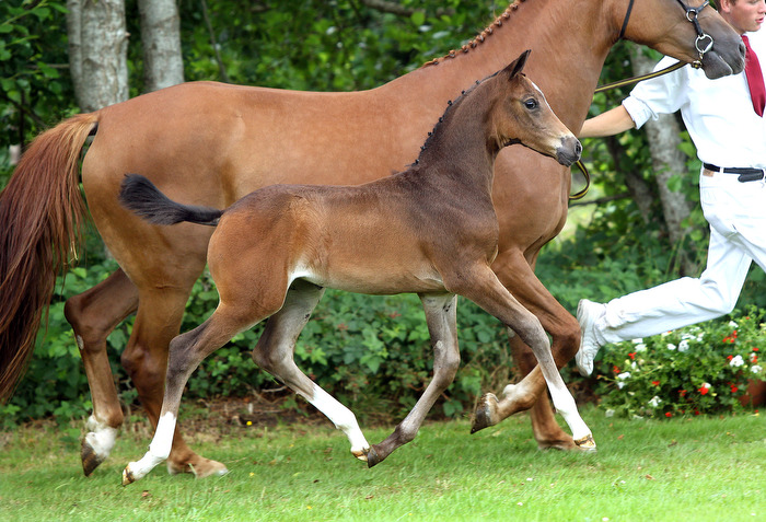 Ampère was hengstenkeuringskampioen en kreeg de bijnaam `professor` dankzij zijn excellente verrichtingen. Hij heeft al meerdere veulenkampioenen gebracht, waaronder de Nationaal kampioen 2009. Hij is hier gekoppeld aan de merrie Zydora, die afstamt van de succesvolle Grand Prix-dressuurhengst Scandic. In de fokkerij valt Scandic op dankzij producten als Zambuka en Sir Scandic. Zydora is onder andere een halfzus van het Grand Prix-dressuurpaard Pancratius (v.Winckenburgh) en de in Denemarken tot verrichtingskampioen gekroonde hengst Sam Sam (v.Houston), die in Nederland was aangewezen. De moederlijn voert verder het bloed van Zandigo, Makelaar en Bastiaan. Uit deze stam komen vele goede sportpaarden. Fardau was kampioen op de Jonge Veulenkeuring in Tolbert en werd voor de Nationale Veulenkeuring geselecteerd. Fokfamilie 346 |
