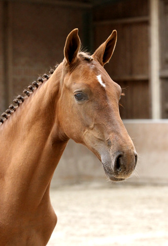 Onder Philippe Lejeune won vader Vigo d?Arsouilles in 2010 het Wereldkampioenschap in Kentucky. Zijn oudste producten springen zelf ook in de internationale sport zoals Tortola, Dixson en Chauvinist. Moeder Verina II is een halfzus van het Grand Prix-springpaard Lakey (v.Lasino) van Christina Mailin en het 1.40m-springpaard Ragnarok II (v.Lavaletto). Grootmoeder Herzdame II is ook grootmoeder van de Holsteiner hengst Crunch (v.Clarimo) en ze is een halfzus van de Deens gekeurde hengsten Bogegarden's Capello (v.Calato) en Bogegarden's Quattro (v.Quinar). Moedersvader Cassini II is ook vader van internationale springpaarden als Kassini' Jac, Chicago en Oda I. |
