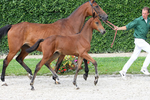Dit interessante merrieveulen is gefokt uit Finook M, een halfzus van het internationale 1.45m-springpaard Zaretino (v.Cassini I) van Jan Wernke. Grootmoeder Minook is een volle zus van de Duitse hengst Cheenook en ze is ook grootmoeder van het 1.40m-springpaard Bacardi VK (v.Numero Uno). De lijn gaat terug op de Trika (v.Romantiker), zij is ook grootmoeder van de Grand Prix-springpaarden Cannavaro (v.Caplan) van Mclain Ward en Cocu (v.Cassini I) van Mario Deslauriers. Diamant de Semilly presteerde zelf op het hoogste niveau en wordt in de topsport vertegenwoordigt door opvallende nazaten als Quickly de Kreisker, Emerald van ?t Ruytershof en Utamaro d'Ecaussines. Olympisch kampioen en topvererver Baloubet du Rouet staat als moedersvader te boek. |