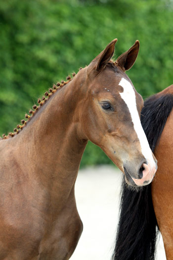 Moeder Filandra JR behaalde haar elitepredicaat dankzij een goede IBOP met zesmaal een 8 (totaal 79 ptn). Daarmee onderstreept ze de springkwaliteit die in deze moederlijn verankerd zit. Zo leverde grootmoeder Lilandra onder meer de internationale 1.45m-springpaarden Velvet (v.Indorado) van Abdulla Braik Al Marri en diens volle broer Grey Star van Gianni Govoni. Kwiltland JR stamt af van de Grand Prix-geklasseerde hengst Arezzo VDL, die eerst onder Jessica Kürten en nu met Jur Vrieling furore in de internationale sport maakt. Arezzo VDL heeft reeds bewezen veel springaanleg door te geven aan zijn nafok en dat kan ook zeker gesteld worden van de internationale springpaardenleverancier Indoctro, die als moedersvader zijn inbreng heeft in deze pedigree. BTW plichtig nee. |