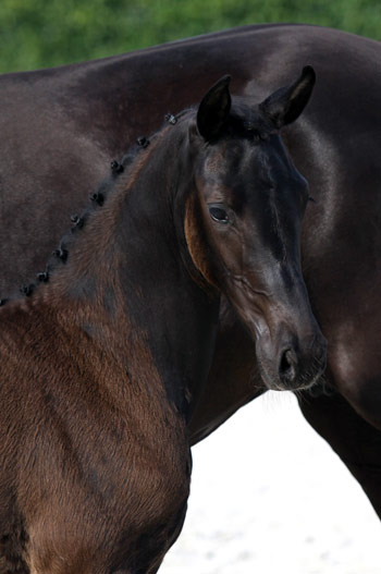 Met een 8,5 voor de draf en louter 8-en voor alle andere onderdelen liet moeder Eluciënne V.O.D. in de merrietest zien van goeden huize te komen. Ze is een halfzus van de KWPN-goedgekeurde hengsten Davino V.O.D. (v.Hotline) en UB40 (v.Olivi) evenals het Lichte Tour-dressuurpaard Reveller (v.Juventus) van Willem-Jan Schotte en de ZZ-licht geklasseerde Bowy O (v.Fürst Heinrich) van Gerjanne van Os, die eerder al 86,5 punten bijeen liep in de IBOP. Daarmee komt deze veelbelovende Kiluciënne STMT uit een vooraanstaande dressuurfamilie. Als vader staat de veelbesproken Deense eyecatcher Sezuan te boek, die vorig jaar in Verden wereldkampioen bij de vijfjarigen werd en steevast veel beweging, houding en dressuuraanleg vererft. BTW plichtig ja. |