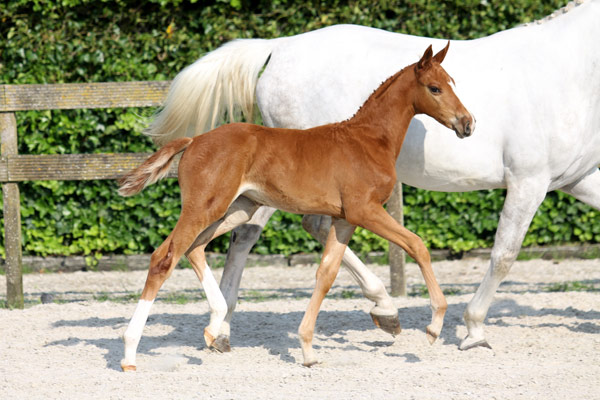 Als vader staat de genetisch interessante Mylord Carthago te boek, die onder Pénélope Leprèvost al jarenlang tot de top behoort en deelnam aan de Olympische Spelen. Zijn oudste producten staan aan het begin van een internationale carrière. Via de geweldig fokkende Grand Prix-hengst Mr.Blue, vader van topspringpaarden als Simon, Plot Blue en Sapphire, gaat de lijn terug op de 1.30m-springende Nickara S. Overgrootmoeder Dara presteerde in het 1.35m en is een halfzus van 1.40m-springpaard Vienna (v.Cavalier) van Joy Lammers. Zij is ook grootmoeder van de SF-gekeurde hengsten Vanhouten de Vains (v.Cacao Courcelle) en Ubu du Reverdy (v.Allegreto) evenals het 1.40m-paard Ravissante du Reverdy (v.Quidam de Revel). BTW plichtig nee. |