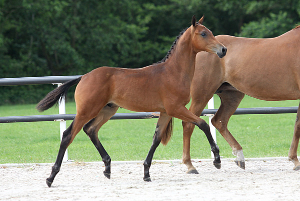 Moeder Zydora werd ster verklaard met 90 punten voor haar fabelachtige draf. Ze is een halfzus van het nationale Grand Prix-dressuurpaard Pancratius (v.Winckenburgh) van Emily Gershberg en de in Denemarken tot verrichtingskampioen gekroonde hengst Sam Sam (v.Houston), die bij het KWPN aangewezen was. Grootmoeder Endora is ook grootmoeder van het ZZ-Zwaar paard Bon Schufro (v.Don Schufro). Uit deze directe lijn komen tevens de Lichte Tour-paarden Accentuate (v.Tuschinski) en Stentano (v.Houston) evenals het ZZ-Zwaar paard Benetton (v.Citango). Vader Johnson behoort tot de wereldtop onder Hans Peter Minderhoud en nam dit jaar deel aan de Olympische Spelen. Bovendien is hij voor zijn opvallende fokkerijresultaten beloond met het keurpredicaat. BTW plichtig nee. |
