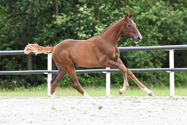Van een springpaard, komt een springpaard! Dat zit met deze interessante Mangaloni MB helemaal goed. Zijn moeder Paccalonie K presteerde zelf op 1.40/1.50m-niveau met Albert Zoer en bracht al de internationale springpaarden Emymolga (v.Numero Uno), die met Michael Kearins deelnam aan het WK voor vijfjarigen, en Vice Premier K (v.Hold Up Premier) van Michala Johansen, evenals nog een 1.35m-paard. Ze is een volle zus van het Grand Prix-paard Gyltaire van Michael Whitaker en halfzus van de Grand Prix-paarden Cat’s Charly (v.Furore) en Ravel Z (v.Rex Z). Uit deze vooraanstaande Molga-stam komen ook toppaarden als Linky, The Shinto, UserID en Varios. Vader Tangelo drukt zijn stempel met uitschieters als Darry Lou, Billy Angelo, Victoria, Vigaro en Bintang II. BTW-plichtig / geen landbouwverklaring subject to VAT/no agriculture declaration |
