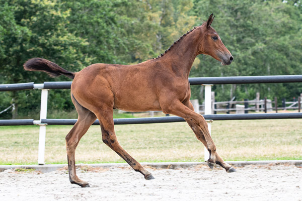 Odelien DN komt uit een stam waaruit al meerdere internationale springpaarden zijn gekomen. De lijn gaat rechtstreeks terug op Rosie van de Hermitage, die zelf in de sport schitterde op 1.45/1.50m-niveau met Michel Robert. Moeder Ficalien DN nam als CK-kampioene deel aan de NMK. Niet BTW-plichtig |