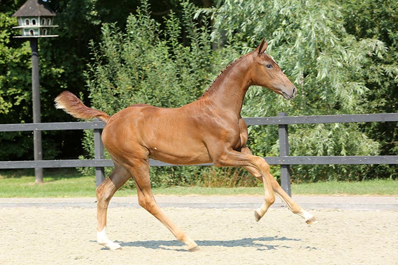 Verrichtingskampioen Kallmar VDL is samengebracht met de bijzonder succesvolle moederlijn die teruggaat op stammoeder Ecolien. Zij staat ook aan de basis van de Grand Prix-springpaarden Flawless (v.Cheers Cassini) van Michael Duffy en Velini (v.Cheers Cassini) van Rodrigo Lambre. Niet BTW-plichtig |