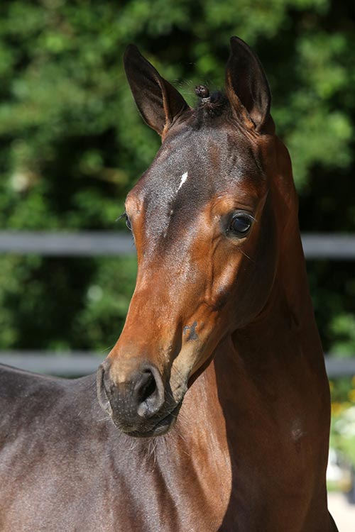 Onder Lauren Crooks presteert de voorheen door Nathalie van der Mei uitgebrachte Grand-Dessert nu op internationaal 1.50/1.55m-niveau en deze Radina is gefokt uit haar jonge halfzus. Vader Dakar VDL bewijst veel springaanleg door te geven aan zijn nakomelingen. Niet BTW-plichtig |