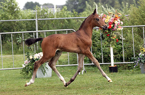 BTW is a son of the dressagestallion Johnson (Jazz). Johson was as a 3-year old champion of the stallion-show. BTW himself received an invitation for the National Foal-keuring. Dam Lieni is a keur-mare sired by the international dressagestallion Vincent (Pretendent), who is also father of the wellknown dressagestallion Cabochon and the international dressagehorse Cibufa. Grandam Cieni (Ulrich) is classified in the Z-dressage and brought in combination with Krack C and Z2-dressagehorse. Great-grandam Kieni is also dam of the national dressagehorse Griffier (Pretendent) under Sander Marijnissen. This lineage produced also the stallions Nobility, Opan, Respect and Troy. |