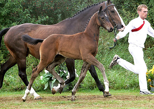 The very beautiful dressagestallion Sandreo (Sandro Hit) was in 2005 the champion of the stallioncompetition and the PAVO-cup (championship for young dressagehorses). In the pedigree of Boogy Woogy K.M. we see him combined with the ster-mare Nicelooking Nicky, a daughter of the well known Contango (Contender). Contango himself had a lot of success in the international dressagesport and he brought many successfull dressagehorses like Madorijke, Now I’m Here and Nanou. This damline brought also international showjumpers like Interadel Z, Luron and Chanson and also the approved stallions Revel O, Oscar and Kimberly. |