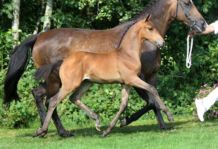 Sire Ampère was stallion selection champion and got the nickname `professor` for his excellent results. He?s produced several champion foal, including the National Champion Eos-Utopia. Dam Korella is sired by sports stallion Caritas, which we find in Cocktail Time?s and Just Royal dancer?s damline as well. Through foundation stallion the damline traces to the famous Portella. She was double Z-classed and performed at the UTV several times. Portella produced a number of UTV-mares, several successful sports horses including the international jumper Corella (Saros xx) and the national jumper Gokker (Bredero). |