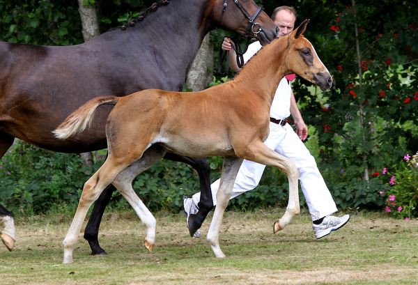 Sire Florencio became World Champion as a five and a six years old. He performed very well in the Small Tour with Hans Peter Minderhoud and is beloved in breeding because of excellent offspring like Borencio, Charmeur and Aaron. Galazar is bred out of Zerzer, who is a full sister of the fourth level-dressagehorses Vinzar and Ulzar. Damsire Jazz is the best dressagestallion of the world, he sired Grand Prix-horses like Jerich Parzival, Premier, Tango and Nartan. Granddam Luzar was performing on third level and produced the selection stallion Sezar (s.Flemmingh). She is also dam of a second-round-selected stallion sired by Jazz. |