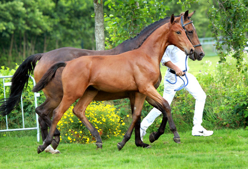 The impressive international showjumper Douglas is producer of outstanding offspring like Colorado, Dallas and Dolivia. Dam Urovette H is also dam of the national showjumper Bernavette H. Granddam Pirouette produced an 1.30m-showjumper and is an halfsister of the AES-stallion Amour HE (s.Silverstone) who is currently on 1.35m-level. |