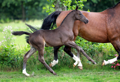 The Grand Prix-stallion Hofrat already produced several Grand Prix-horses and the well-known stallion Hotline. Dam Tulitte is a full sister of the Small Tour-horse Olivier, who won the Dutch championships for 3yo (VSN). Tulitte is dam of a third level-horse and granddam Gulitte also produced a third level-horse. |