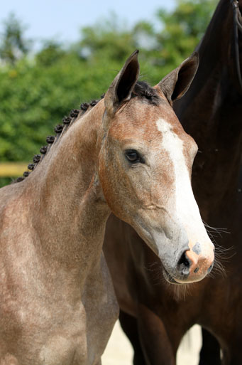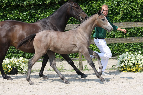 Dam Falicore succeeded her mare testing with 77 points and is a full sister of the Swedish approved stallion Elliot VDL. This damline goes back to the famous mare Ibylle (s.Moltke I). This mare from Holsteiner line 104A is the founding mare of successful international jumping horses and approved stallions Corland (s.Cor de la Bryère), Landetto (s.Landgraf I), Alpha Omega (s.Acorado I), V.Alba 69 (s.Rubert R), Acodetto (s.Acobat II), Clapton (s.Caretino) and Corlanda (s.Cor de la Bryère). Granddam Abylle is a sibling to Gert Naber’s international eventer Max (s.Libero H). Jantina’s sire is the Grand Prix-stallion Zirocco Blue VDL who recently won Grand Prix’s of Geesteren, Copenhagen and Vestfold with his rider Jur Vrieling. |