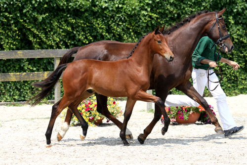 Dam Vinci competed successfully at third level dressage and succeeded her IBOP with a 8.5 for the trot. She is a sibling to the Small Tour-dressage horse Whizy (s.OO Seven) who is ridden by Joyce van Opbergen and three other third level dressage horses. Granddam Paola is a half sister to the international Grand Prix-dressage horse Ostra (s.Indoctro) ridden by Fiona McNaught. From this direct damline also descends the ZZ-advanced dressage horse Bowie (s.UB40). Jorento?s sire Sorento shows his great qualities at Grand Prix-level with rider Steffi Wolf and with his fine, well moving offspring he also seems to be a huge gain for dressage horse breeding. Top progenitor Jazz adds a full range of performance genes to this pedigree. |