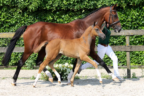 Jinosa is bred out of the mare Ninosa II, who herself competed 1.35m classes and successfully succeeded for the IBOP. Her eldest descendant already jumps at 1.30m level. Granddam Jadinosa produced the international showjumpers After Dark (s.Darco) and Octrooi (s.Voltaire), as well as the international 1.35m-showjumper Colore (s.Quasimodo van de Molendreef) and the national showjumpers Carinosa Z (s.Carthago) and Ninosa II (s.Guidam). From this direct line also comes the 1.40m-horses Copperville (s.Vingino) and Zelinosa (s.Indoctro). Sire Cosun stands out with his huge canter and jumping abilities. He is already competing at international 1.35m level shows with Sonja Vlaar. On the mothers side we find the esteemed international sport and breeding stallion Guidam. |