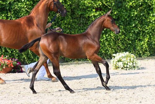 Dam Vanish passed her mare test with a 9 for reflexes and a total score of 78 points. She produced the second viewing stallion Delano W (s.Flipper d'Elle) who gained good grades in Ireland (WSI) at his approval and currently makes furore at the young horse competitions with rider Neal Fearon. Vanish descends from the international sport and breeding stallion Stakkato, who is achieving a lot of success with descendants such as Satisfaction FRH, Scendix, Ukato, Spartacus TN and Saint Amour. As the sire of Jersey Girl W we find the famous stallion Quidam de Revel, who finished fourth at the Olympic Games of Barcelona and is the sire of many international jumping horses such as VDL Groep Verdi TN, Dollar de la Pierre, Nabab de Reve and Ideal the Roy. |
