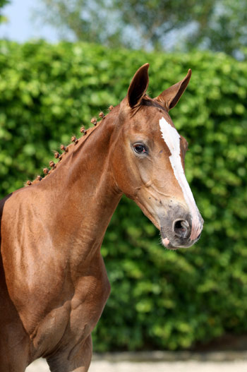 The pedigree of Karnisch includes first class genes. His half sister Hinterhux (s.Corland) received high marks on the mare inspection, like 85 pts for free jumping, last summer. Dam Kalinka d'Ogier is a half sister of the 1.40m showjumper Pilote du Bois Margot (s.Damoiseau d'Or) of Farid Amanzar and is sired by the well-known international sport- and breeding stallion Dollar du Murier. Granddam Forever d'Ogier is bred out of the same dam as the 1.50m showjumper Imperial d'Ogier (s.Dollar du Murier) of Frederic Lagrange. Sire Carrera VDL is one of the future talents of top rider Jur Vrieling and is already performing on 1.50/1.60m level. Just like Karnisch also his sire Carrera VDL represents a successful damline. |