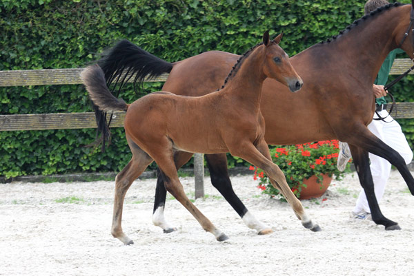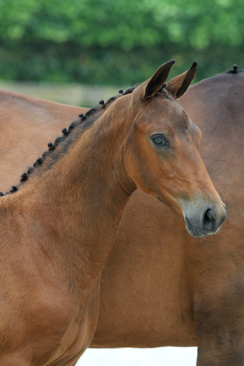 Ridden by Ole Kristoffer Meland the Colandro-son Buckle Up is very successful in the international sport on Grand Prix level. For example they won the Grand Prix of CSI3* Odense this year and earlier the 1.50m-competitions in Budapest and Sopot. Buckle Up is just like this colt bred out of the mare Carentina, who was jumping on 1.30m level herself. Granddam Gina is dam of the international 1.45m showjumper Chocolat 15 (s.Cassini I) of Radoslaw Zalewski and the national 1.40m jumper Conelly 2 (s.Carpaccio) of Franziska Kühl. This eminent damline is united with top talent F-One USA. Nick Skelton took over the training of this 5yo promising stallion and this colt is out of his first crop of foals. Damsire Caretino is known as sire of top horses like Casall, Chupa Chup and Caretano. |