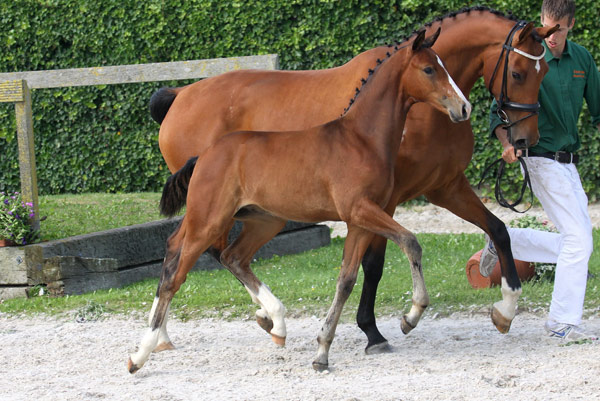 Gimmick is out of the first crop of foals of the popular Totilas-son Governor, who became reserve champion at the KWPN stallion show and is now in training with top rider Adelinde Cornelissen. Also the damline of Gimmick includes first class genes. His dam Chill Out is a half sister of the Oldenburg approved Small Tour stallion Florentiner (s.Florencio) as well as the NRPS approved stallion Jefferson (s.Johnson). Damsire Jetset-D produced Grand Prix dressage horses like Jeff and On Top. Granddam Chandra is a half sister of the KWPN approved stallion Herannus (s.Grannus) and brings in the valuable genes of the top breeding stallion De Niro. Other well-known horses out of this family are the stallions Welt Hit I-VI and Donner Hit. |