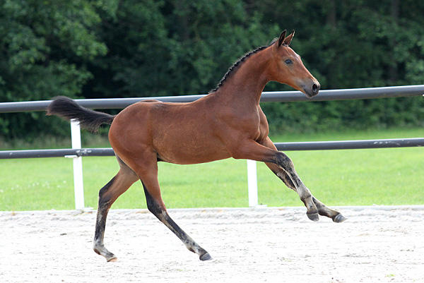 This pedigree meets high standards. The dam of Lavino J E is a half sister of the international 1.40m showjumper Carbani (s.Carolus II) of Jemma Kirk. Granddam Utravola produced an other 1.30m horse, the well-tested Fyvola (s.Numero Uno, mare test 85 pts) and the in Germany approved stallion Tullamore (s.Tornesch). Great granddam Maravola is a special one. She is dam of the international 1.50m jumper Travola (s.Baloubet du Rouet) of Michelle Vandal, the international 1.45m jumper Zyvola (s.Chin Chin) of Omer Karaevli and the 1.40m horses Bravola (s.Quidam de Revel) and Ravola (s.Animo). Besides that, Maravola is a full sister of the Grand Prix jumper Garavola of Leon Thijssen. Sire Douglas puts a stamp with offspring like Suma?s Zorro, Dallas VDL and Dougie Douglas. |