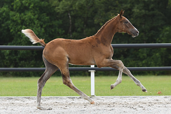 In 2013 dam Ficalien DN was awarded champion of the province of Drenthe. She received the ster predicate with a score of 80 for conformation and 85 for free jumping and went to the national mare show. Granddam Wicalien is a half sister of the international 1.40m showjumpers Carpe Diem IV (s.Douglas) of Hugo Breul and Elwica DN (s.Cardento) of Gabriela Bado. This damline has produced several (inter)national jumpers, such as the 1.40m showjumper Disckoboy DN (s.Douglas), and leads back to Rosie van de Hermitage (s.Voltaire). This mare was competing in the international sport with Michel Robert. Sire Glasgow van ’t Merelsnest has developed into a Grand Prix winner under the saddle of Jur Vrieling and is also known as a very promising progenitor of showjumpers. |