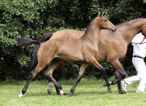This beautiful shaped and strong moving colt was the winner of the dressage foals of Groningen and is invited for the national championship in Ermelo. Sire Uphill (Oscar) last year won the stallion competition and was twice successful at the WC in Verden. A Goodtimes daughter of dam Salita Roos (Flemmingh) is also invited for the national championship in Ermelo this year. Grandam Kerstroos (Damiro) is a half sister of Grand Prix dressage horse Chantor (Roemer) and a full sister of international showjumper Lelie. Breeding family 28 / NL-mare line 029 |