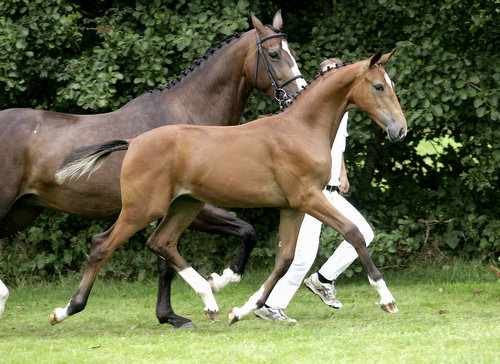 Because of her good movements and longlined model this foal easily became the Champion’s title in Gorredijk. Dam Unieta (Krack C) was the Champion of Friesland as a three years old. She will start again as a dressage horse (level M1). Sire Florencio twice was the WorldChampion and now is trained for a higher level. Grandam Ganieta (Zeoliet) produced among others ZZ-level dressage horse Oganieta (Corleone) and the ZZ-light dressage horses Paganieta (Corleone) and Tenson (Krack C). In the mare line you further more see the blood of Amor, Marco Polo and Favoriet. Breeding family 419 |