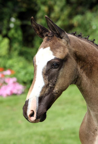 Sire Chello III impressed at the performance test for his outstanding jumping qualities, but also for his excellent gait and beautiful conformation. This colt Ebron is out of his first foal crop. Dam Nilona is a M-level show jumper. Great grandam Ilona performed at Z-level. Ilona was combined with Indoctro and produced a ZZ-level show jumper and is a full sister of the Swiss approved stallion Gentleman V. She is also a full sister of Kanselier’s dam, he is a famous international show jumper owned by Ellen Whitaker. This Holsteiner lineage produced approved stallions like Pacific, Radisson, Dutchboy and Intermezzo. |