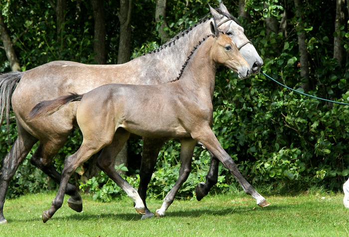 The great galloping sire Campbell VDL achieved great successes with his first offspring. Fianula-N?s damline adds more jumping-genes to the lineage. Dam Thianula-N jumped at international-level with Jur Vrieling and produced the talented Oldenburg-approved Chin Quidam (Chin Chin). Dam?s sire is the famous Quidam de Revel, participating at the Olympic Games and producer of first-class jumpers. Granddam Hinula produced the stallion No Limit, approved for several German Studbooks, and the appointed Unlimited (Voltaire) already jumping at international-level. In addition Hinula is the full-sister of the German sires Lancer I-II-III. |